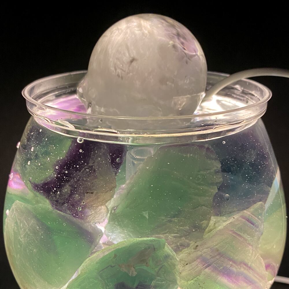 パワーストーン噴水 フローライトラフ 水晶丸玉付き