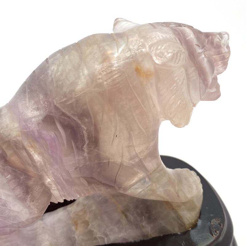 天然石彫刻置物 フローライト 虎 台座付き