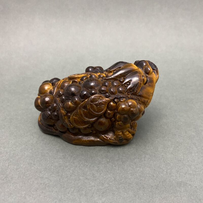 天然石彫刻置物 タイガーアイ 三脚蟾蜍 三本脚の蛙