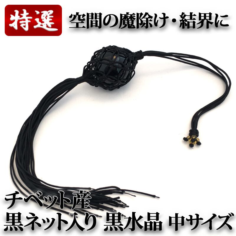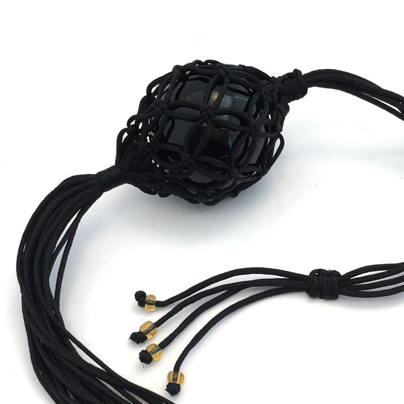 このアイテムは、丸玉を魔除けの色である黒のネットに入れて吊り下げられるようになっています。