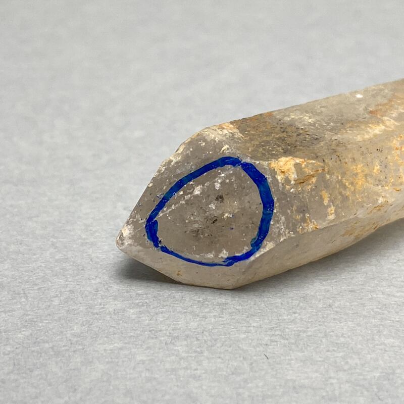地殻の変動・環境の劇的変化により、水晶周辺に流れ込んだ水を偶然に封じ込めて成長した水晶。