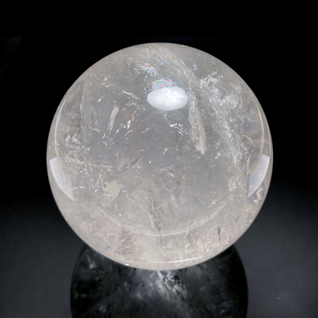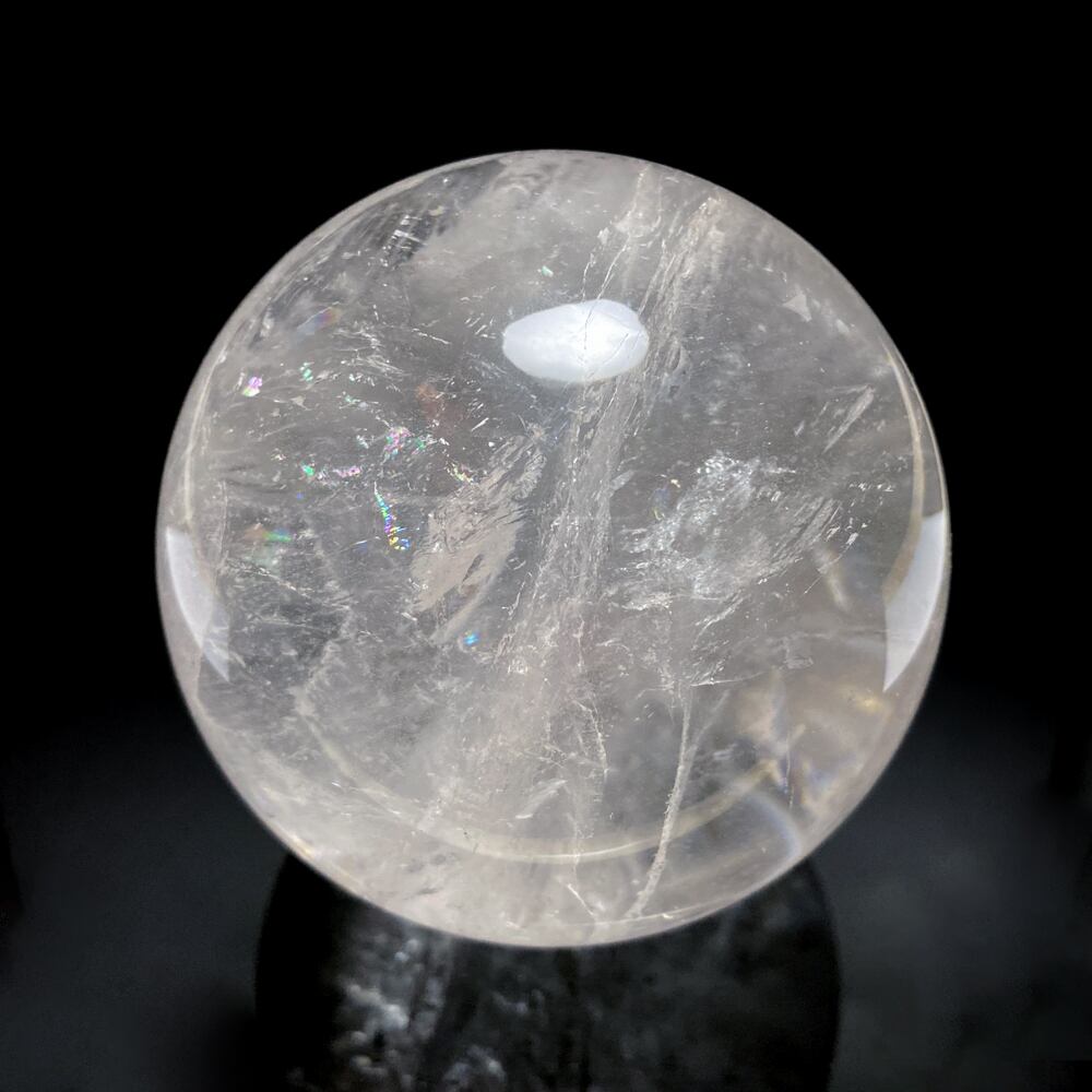 美しいレインボーが入った、大きなレインボー水晶の丸玉です。