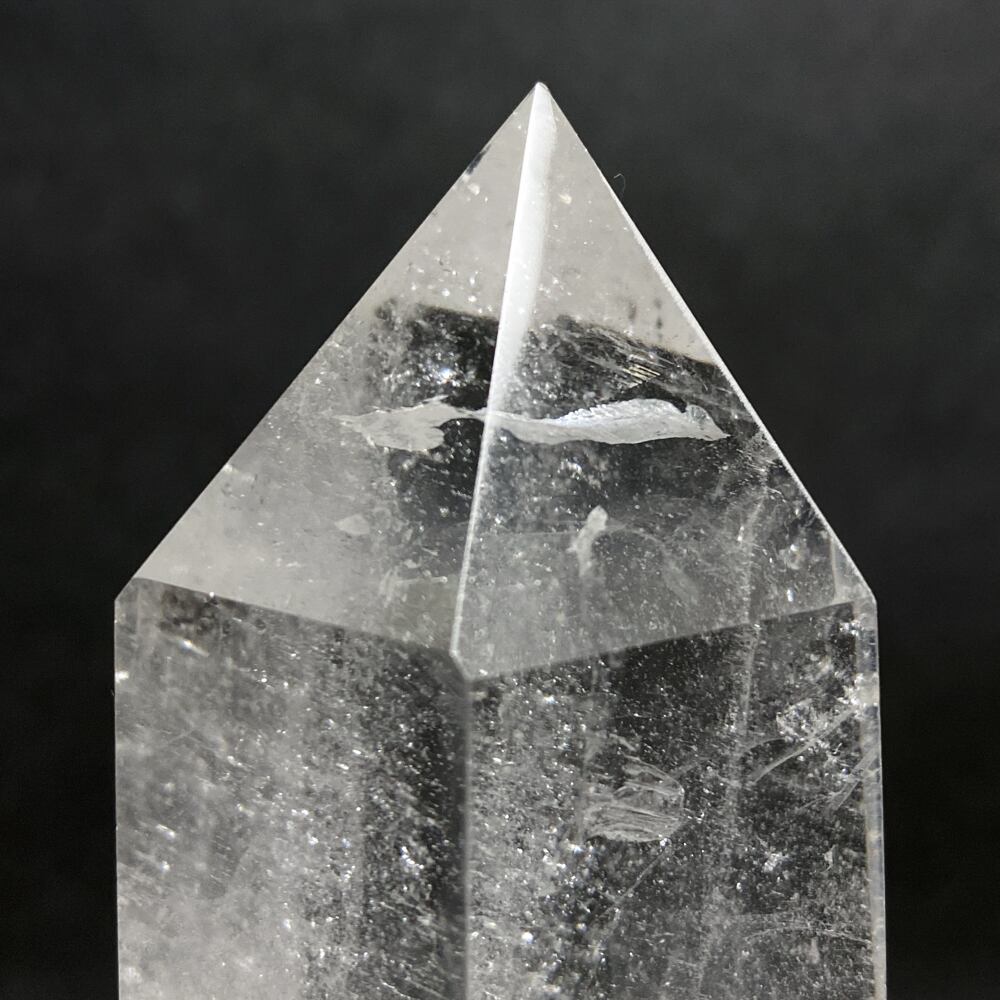 氷のような透明感を感じられる水晶の六角柱です。