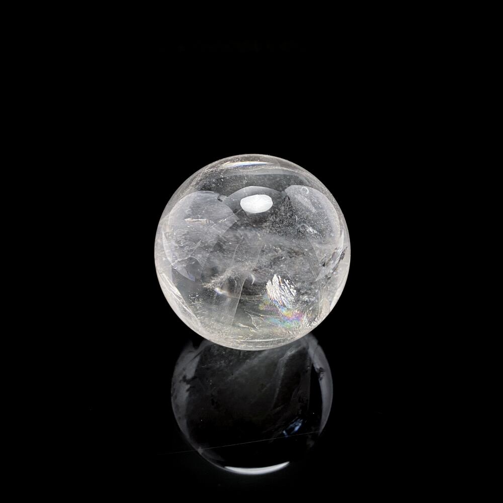 透明感が高く、レインボーが入った天然水晶の丸玉です。