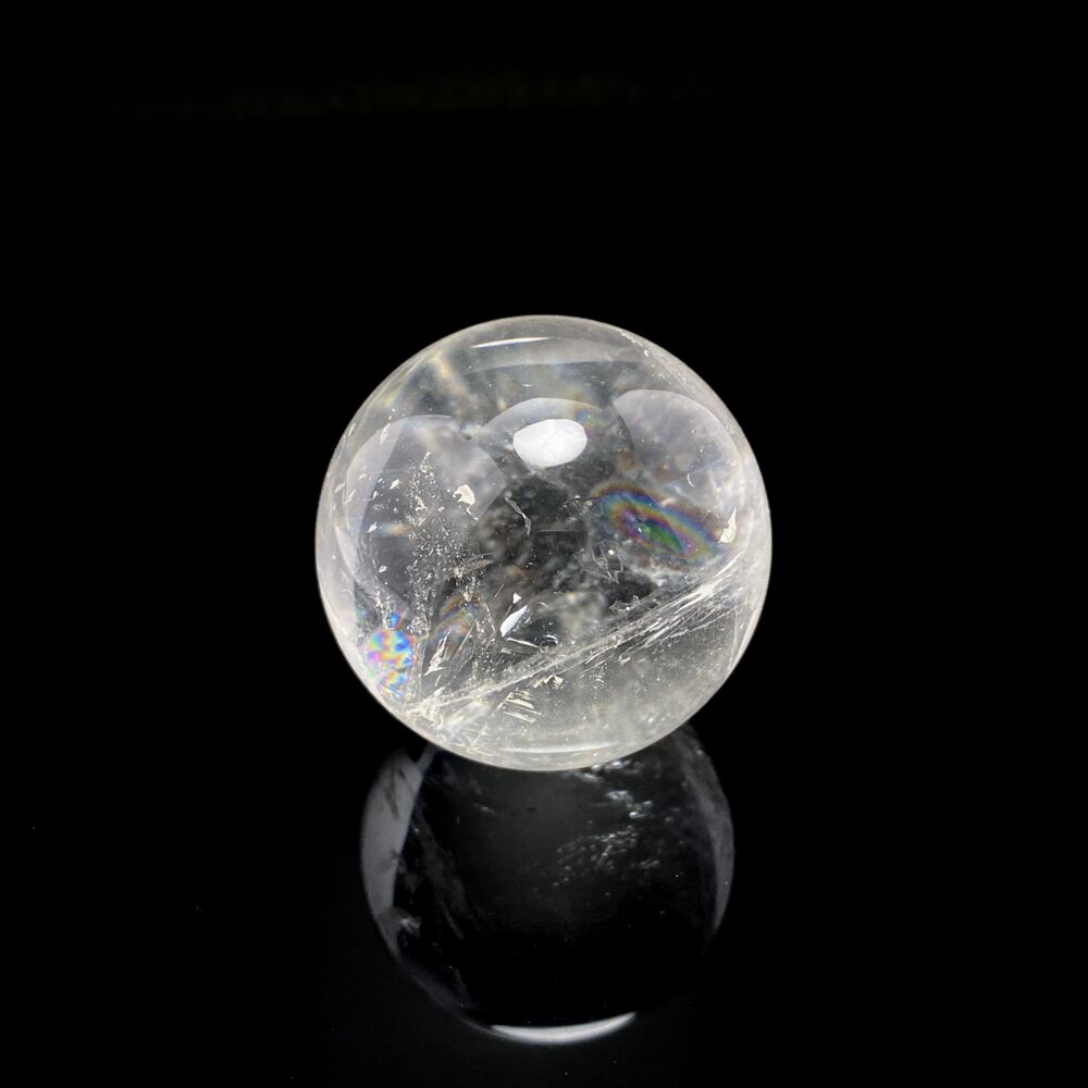 透明感が高く、レインボーが入った天然水晶の丸玉です。