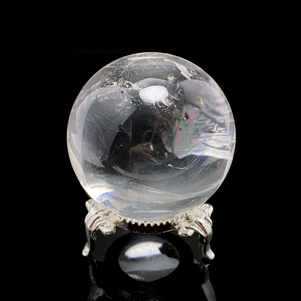 透明感が高く、レインボーが入った天然水晶の丸玉です。