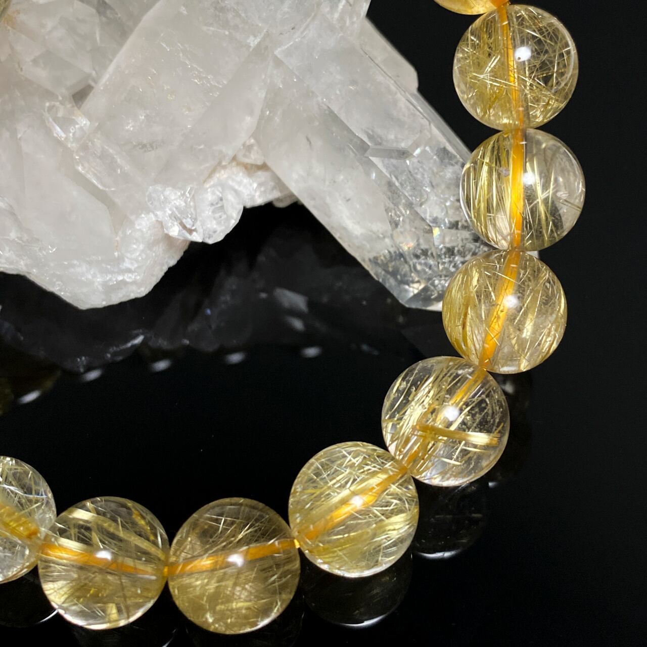 最高品質 金針ルチル ブレスレット 10.5-11.5mm玉 16.5cmサイズ